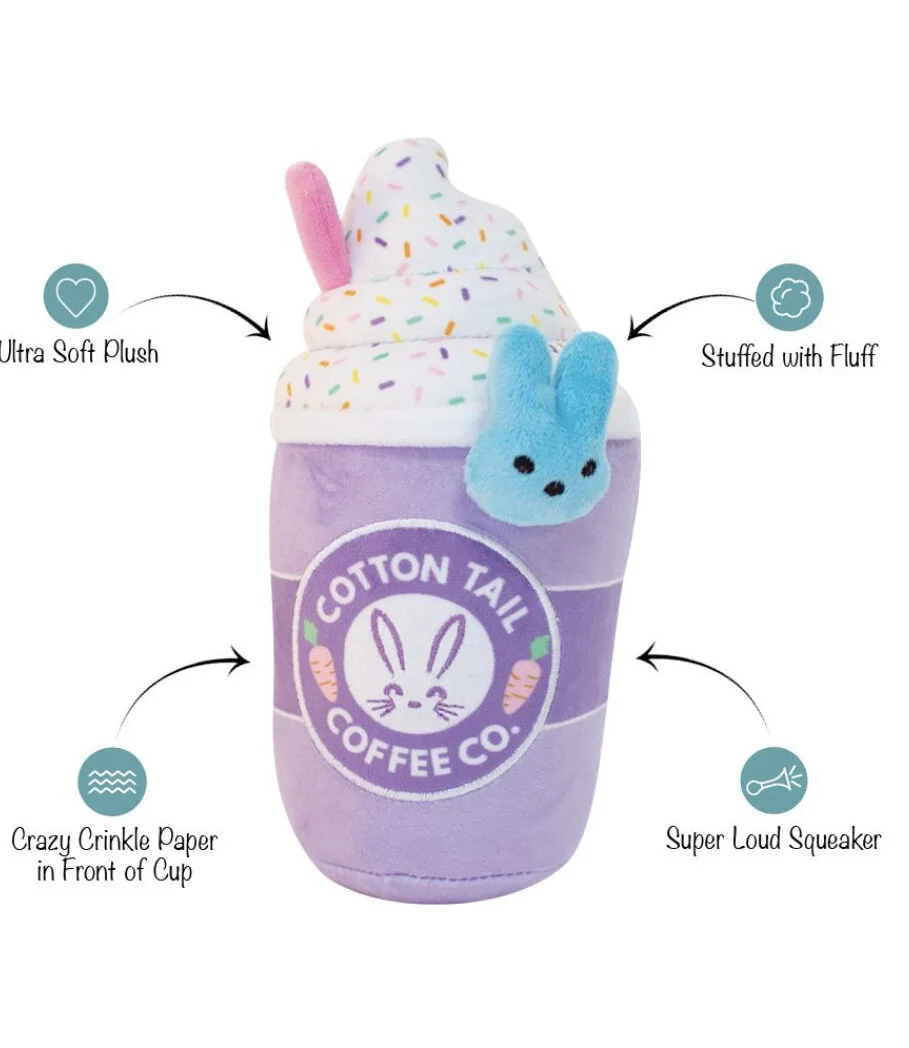 It’s a Brewtiful Day! PetShop by Fringe Studio “Cotton Tail Coffee Co.” plush toy features a squeaker, crazy crinkle paper, and plush. This toy was designed for interactive play in mind! Whether you squeak, crinkle or roll it; your pup will finish the day espressoing their love for their new toy.