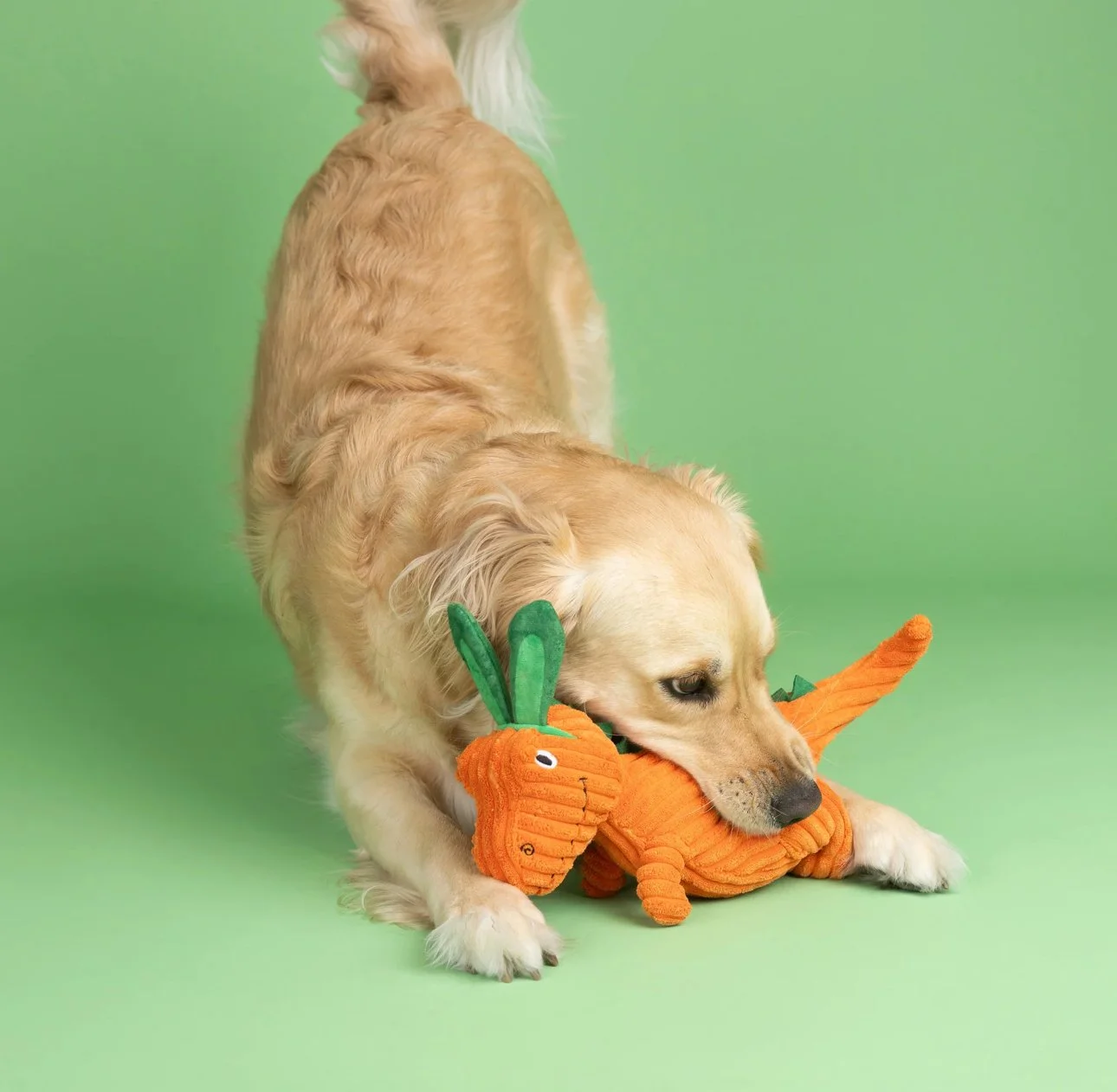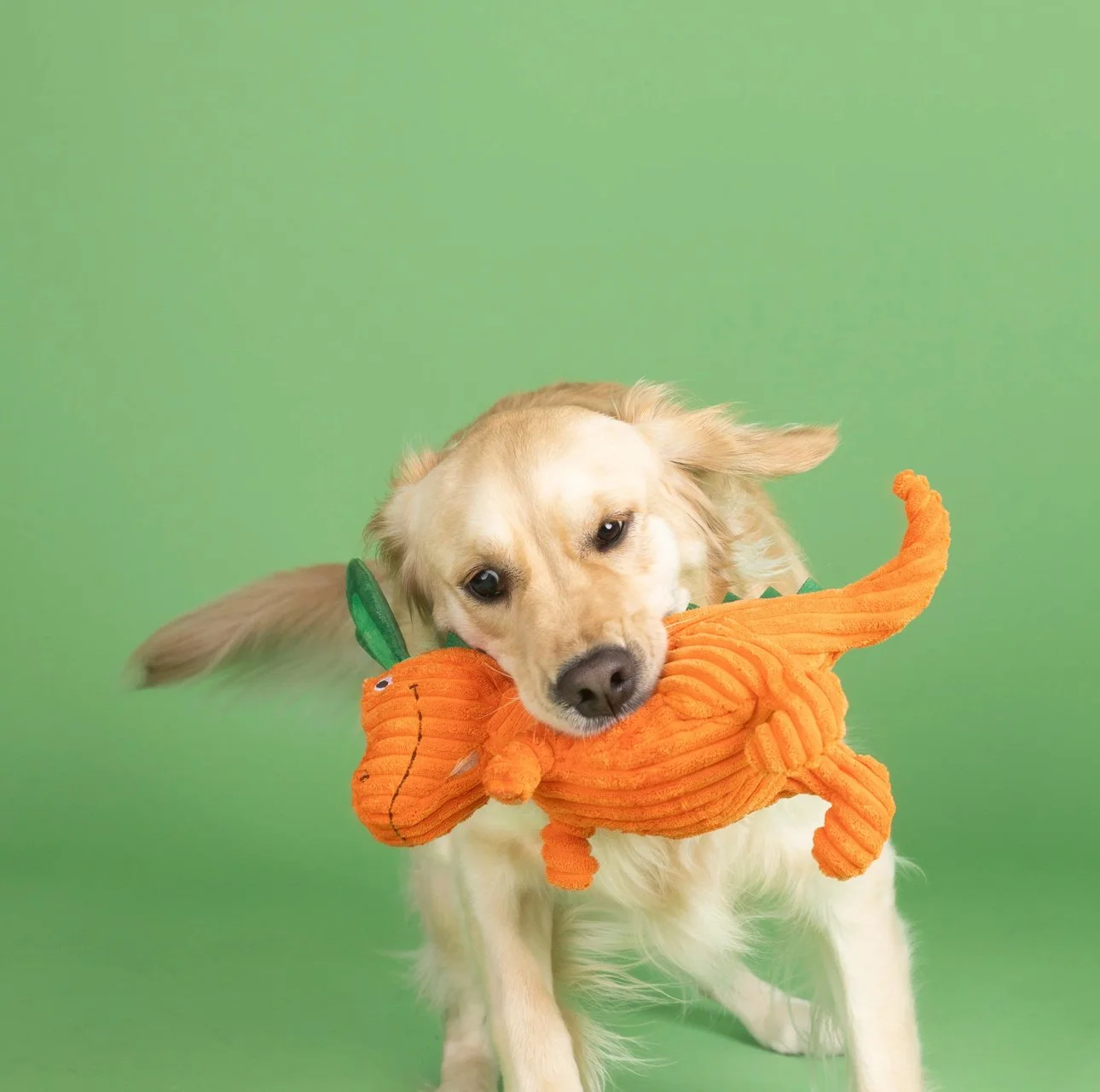Let’s hop to it! Carrot ‘Bout You by Fringe Studio Petshop has playtime and cuddle time covered. Featuring a super soft rugged feel filled with plush, crazy crinkle paper, and a squeaker; this toy is all ears for your pup!
